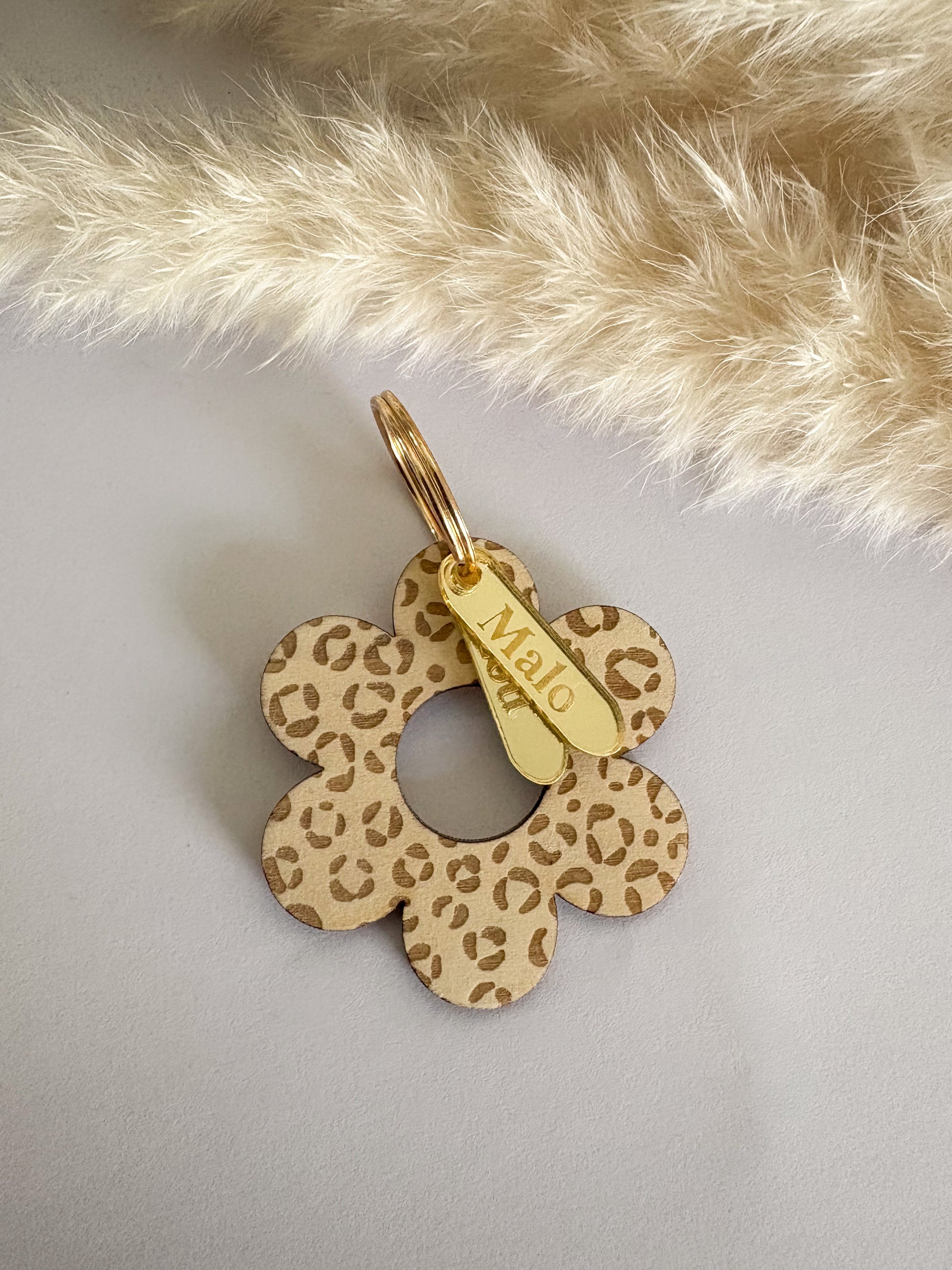 Offrez (ou offrez-vous) un accessoire unique et tendance avec ce porte-clés en forme de fleur motif léopard.
